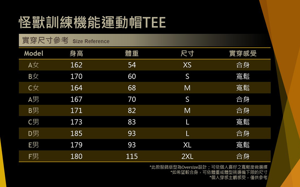 Oversize版型,建議參照尺寸表後,選擇剛好或小一號尺寸。